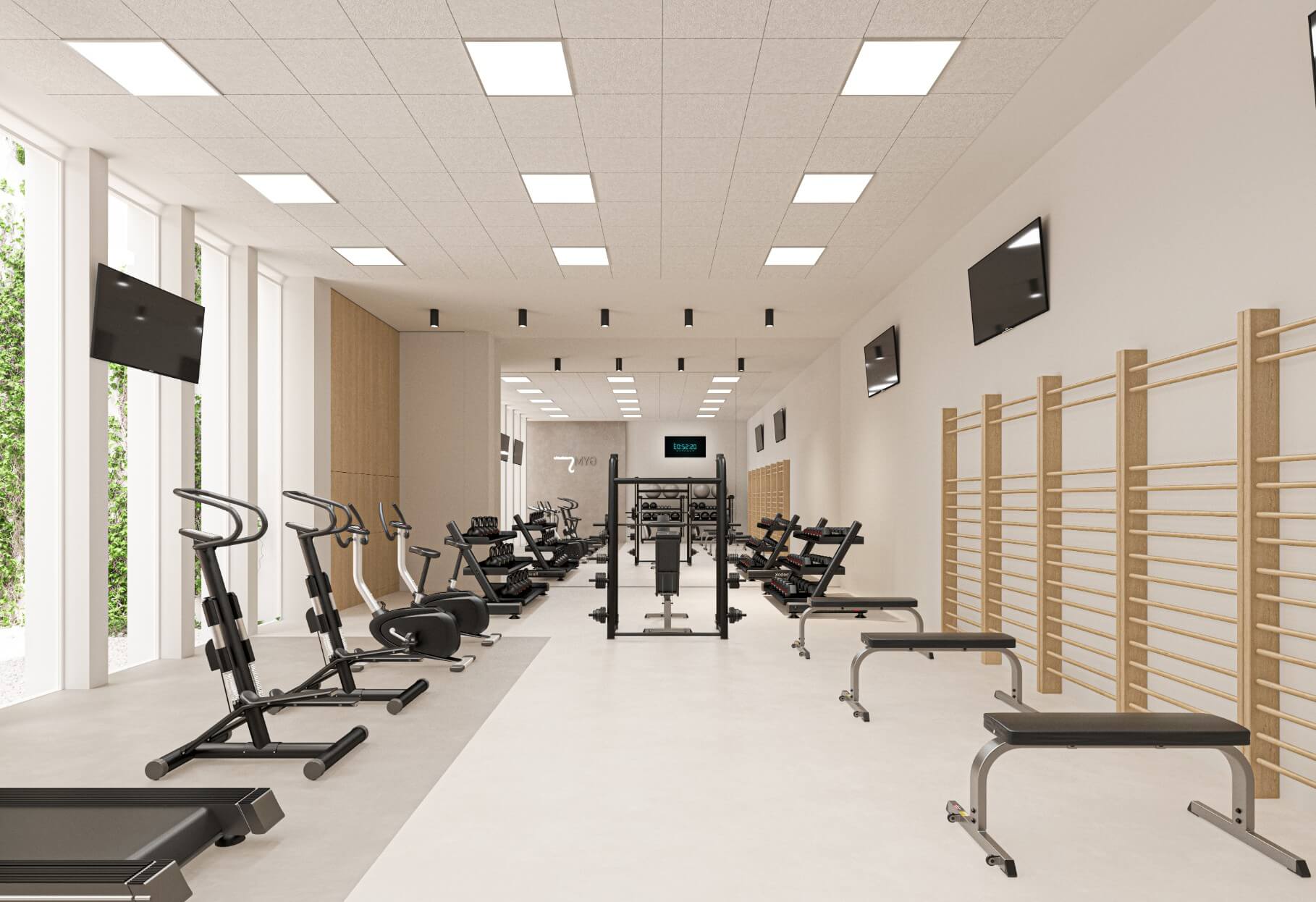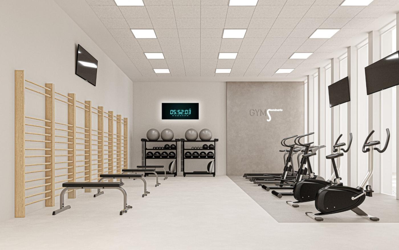 - Gimnasio: Espacio reservado para la actividad física, con equipamiento completo para la realización de entrenamientos con la comodidad de su ubicación en el propio edificio.