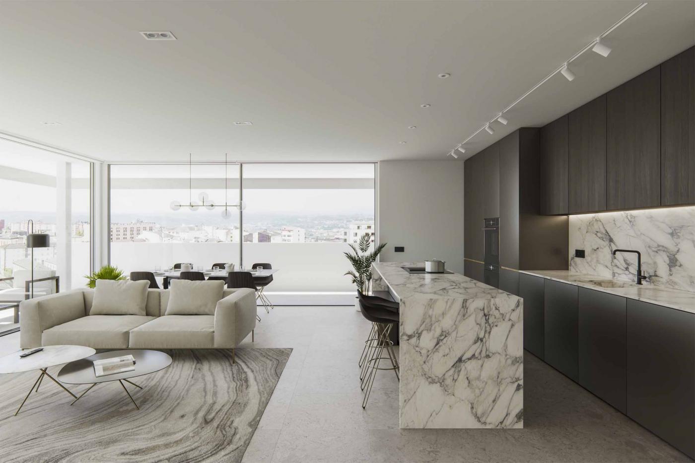 DMANAN VIVIENDA promueve el edificio residencial SEMINARIO SM compuesto de 59 viviendas de 2, 3 y 4 dormitorios, garajes y trasteros en una zona privilegiada, buena comunicación y cerca del parque Rosalía de Castro. Todas las viviendas contarán con plaza de garaje y trastero. Entre los muchos detalles de calidad de SEMINARIO cabe destacar el amueblamiento de las cocinas con muebles de máxima calidad, encimeras de cuarzo y una dotación de electrodomésticos de alta eficiencia energética: lavadora, secadora, lavavajillas, combi, placa de inducción, campana, horno y microondas en columna. Todas las viviendas contarán con calefacción por suelo radiante.